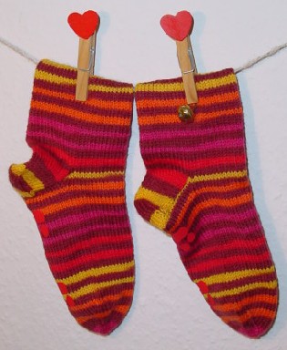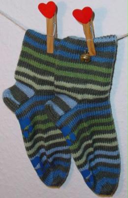 Bei Opal-Tee wurden endlich diese Regia-Ringelsöckchen fertig. Sie sind für das Patenkind und dessen Bruder.